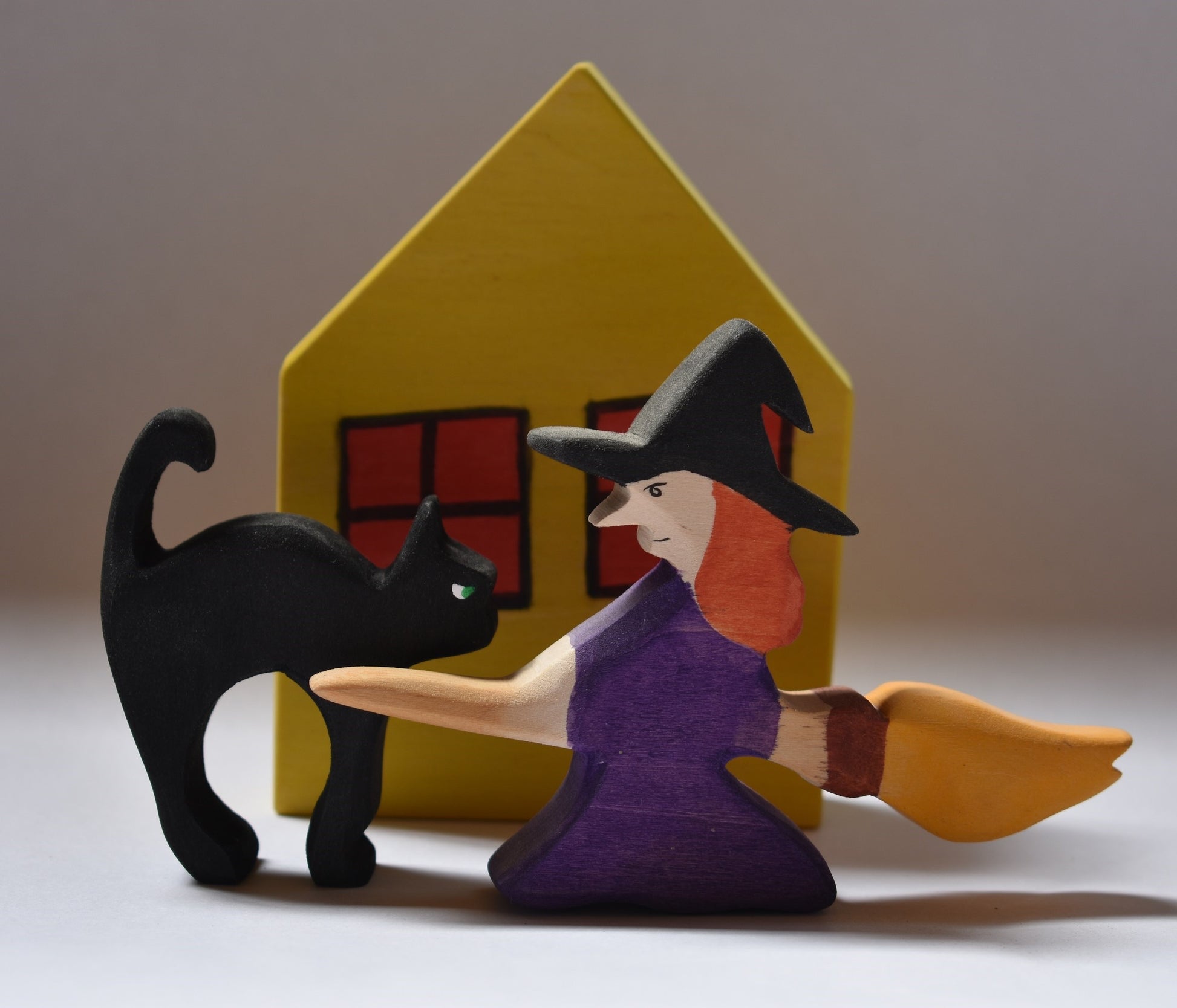 📐The wooden toy figures are of good size; the church, for example, is 5.9" high by 4.7" wide (15 by 12 cm), and the witch is 3.14" tall (8 cm).