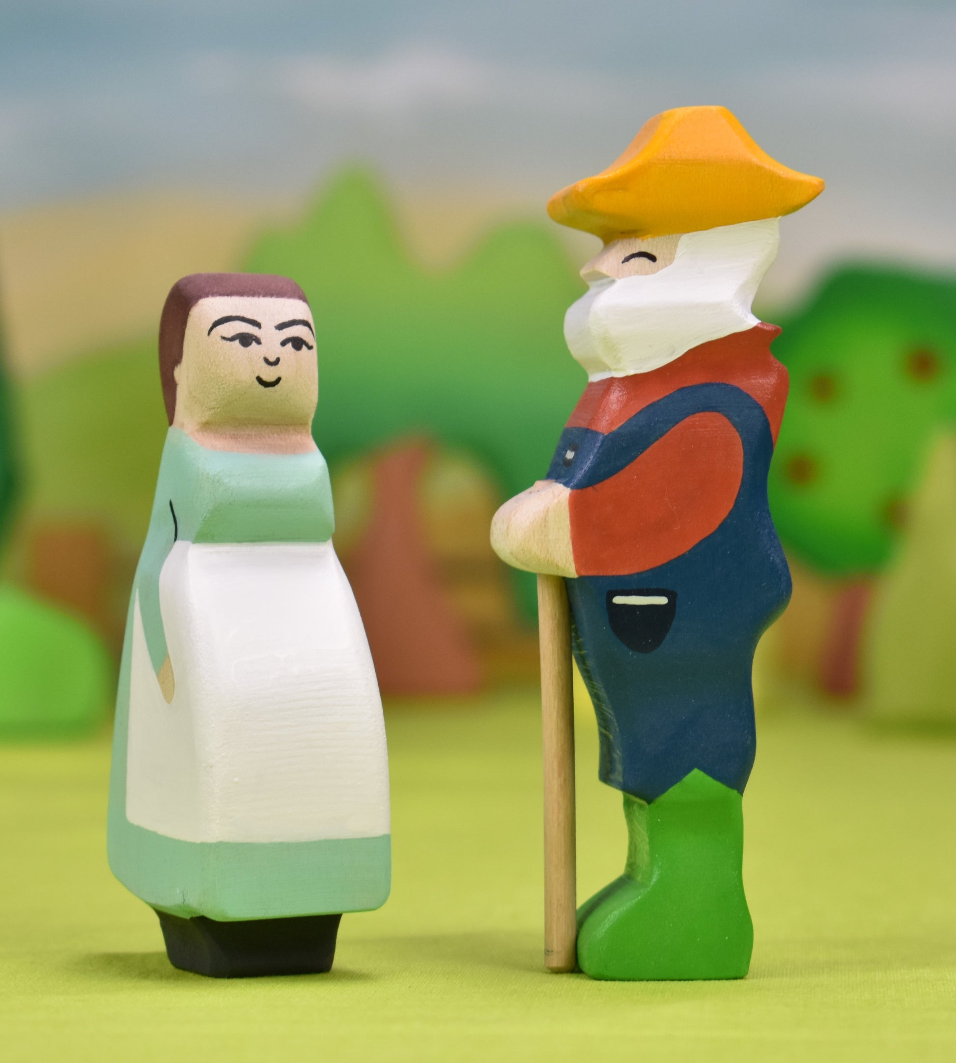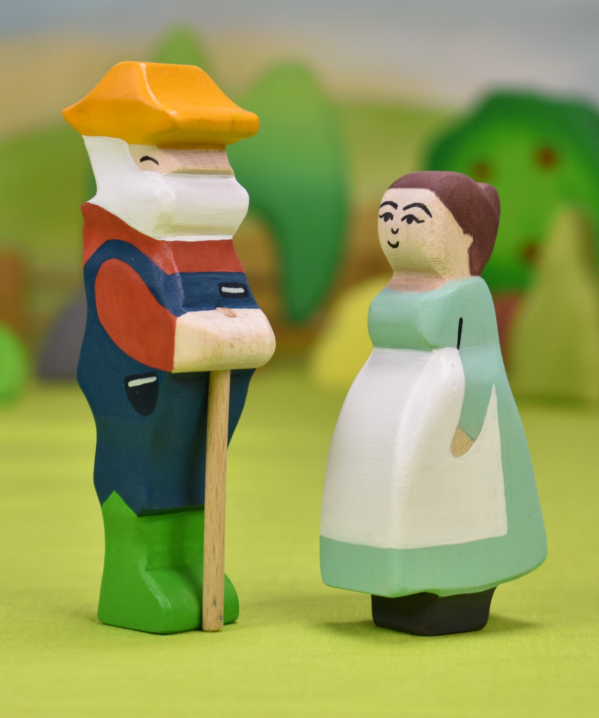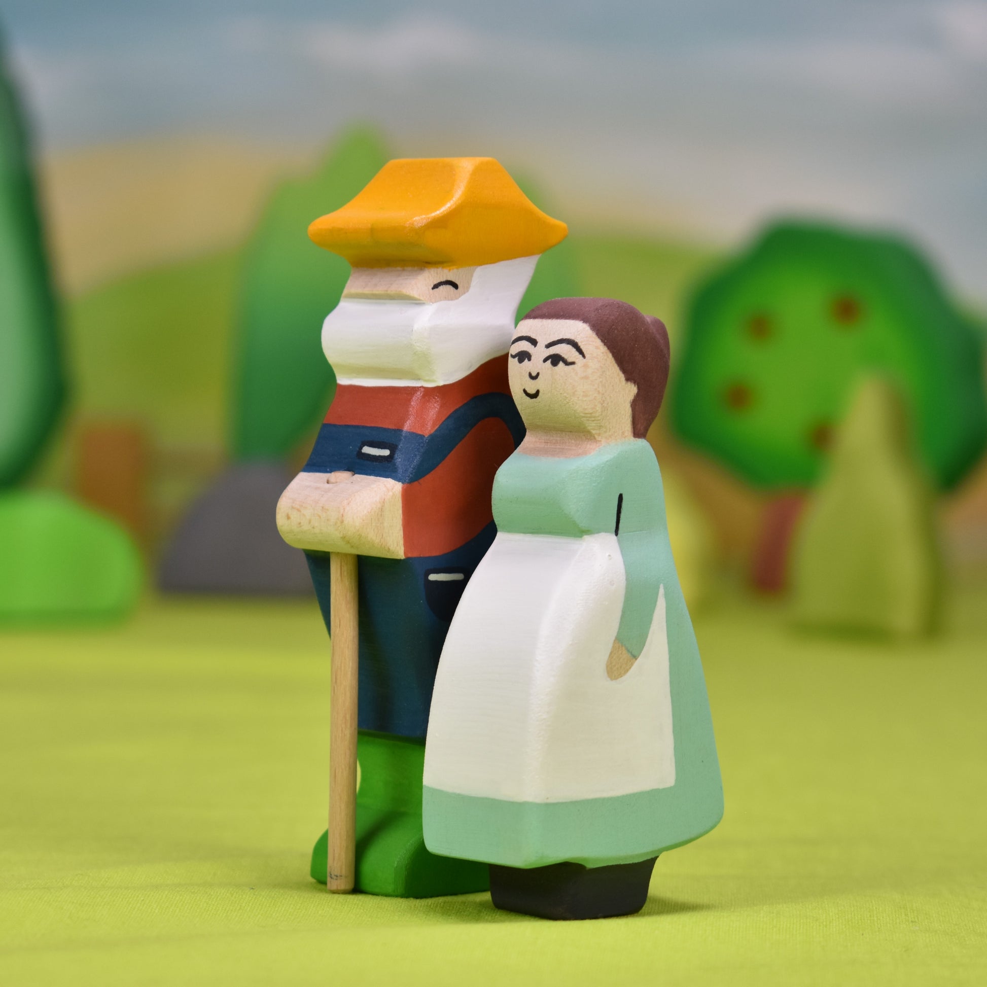 🌳 This small set of Waldorf wooden dolls consists of 2 wooden toy figures:: farmer John and his wife, Anne.
