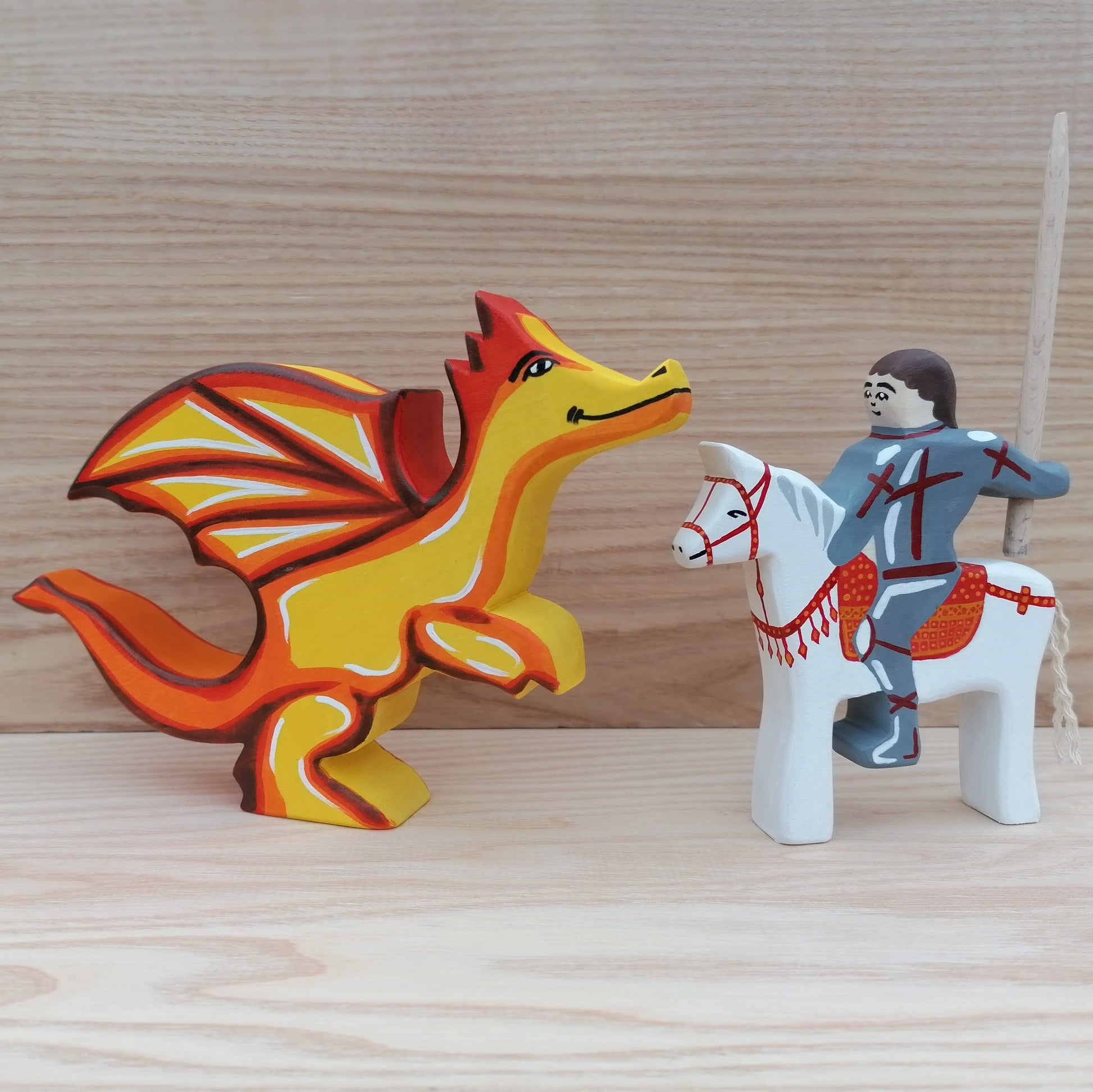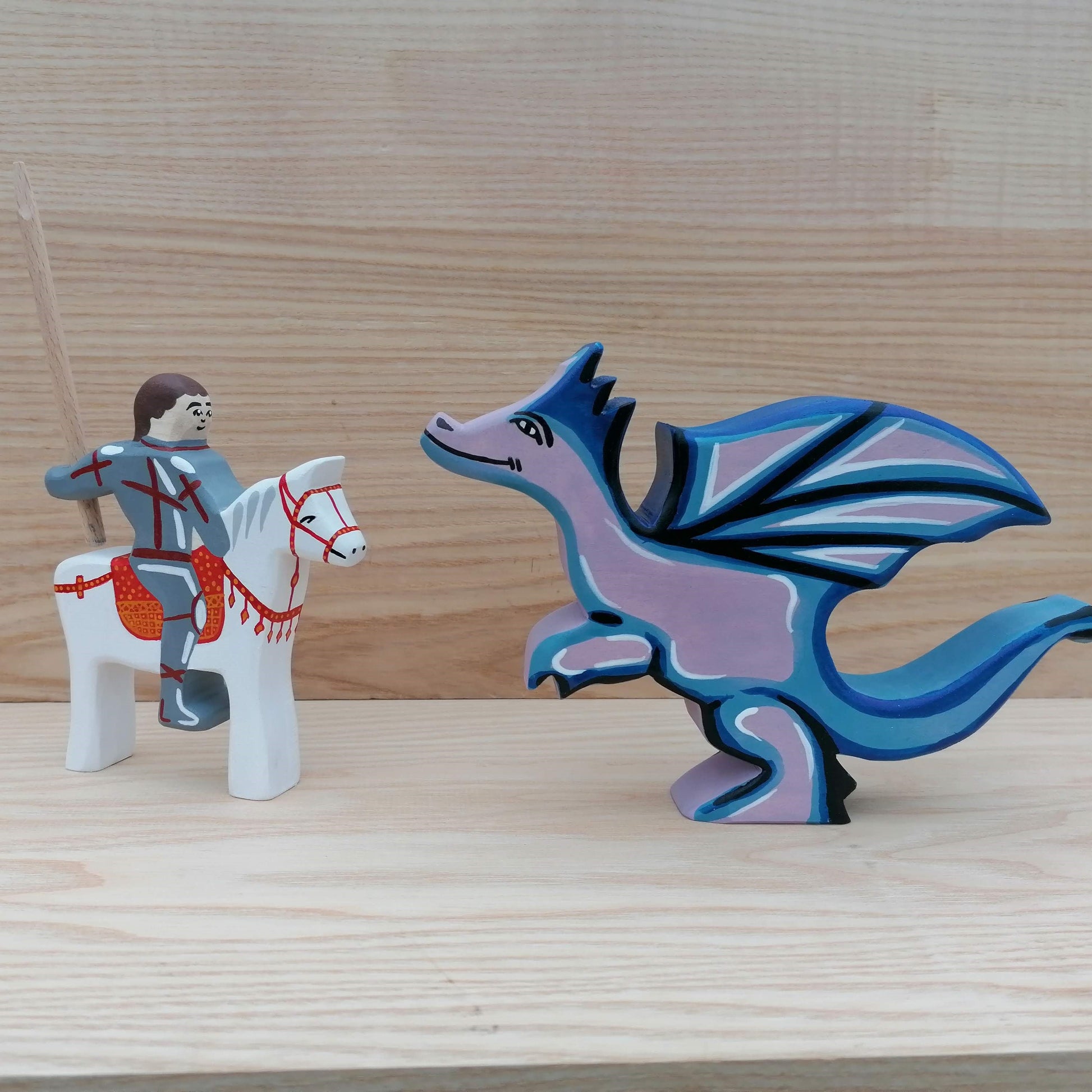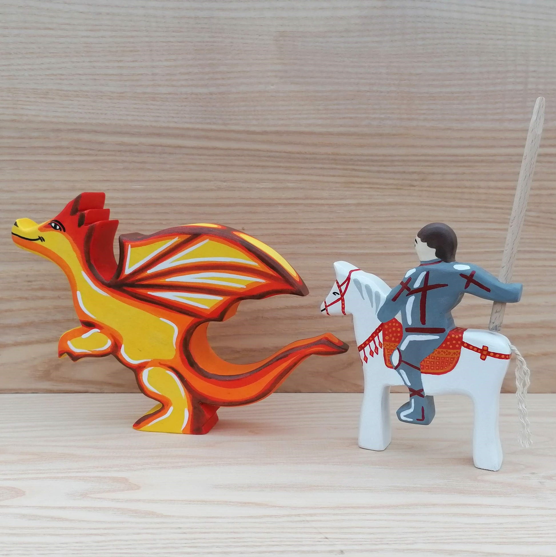 St. George & The Dragon - Wooden dragon toy and knight set