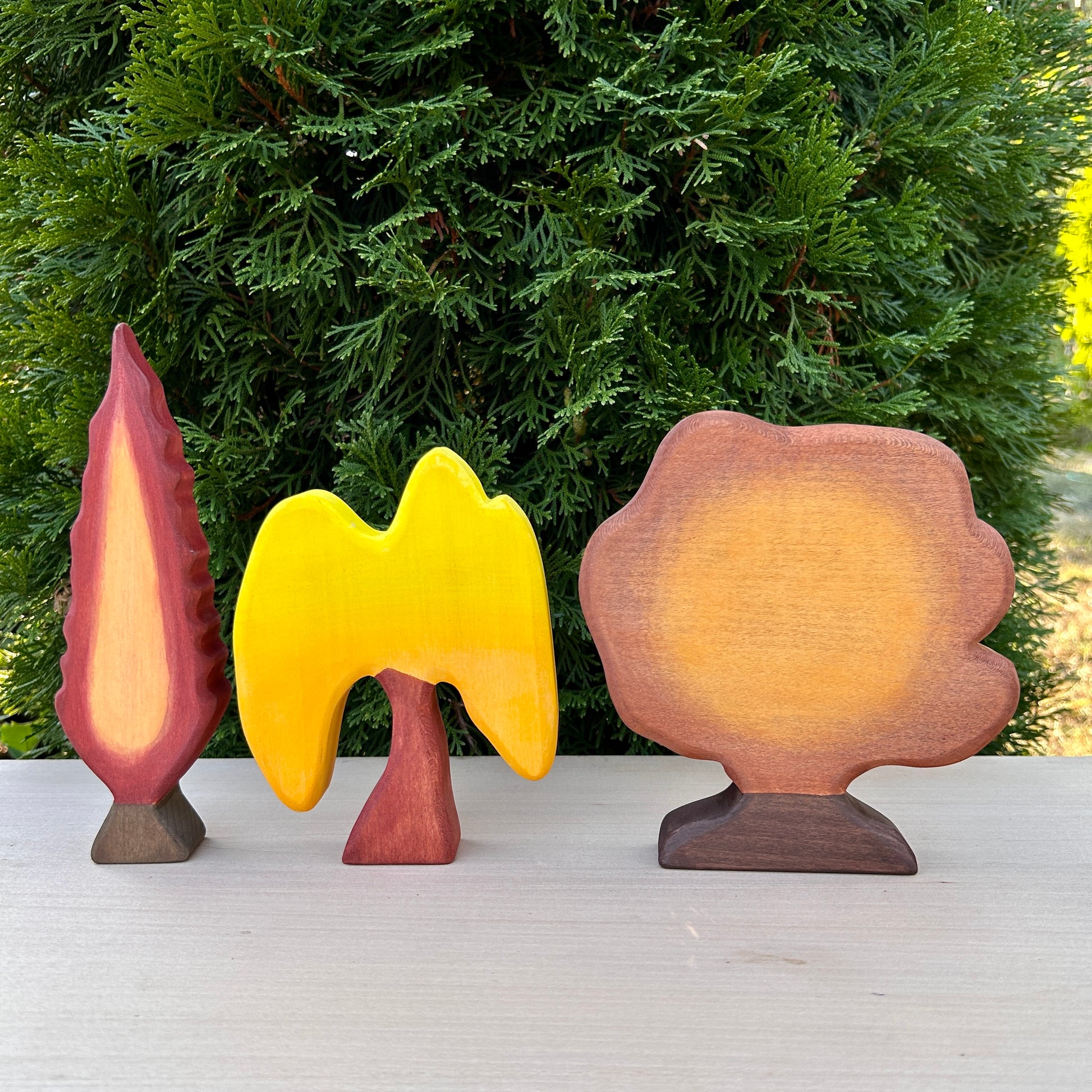 🌳 Our Waldorf toys - wooden tree toy set are dressed for Autumn. With a simple yet stunning design, these woodland trees are a perfect acquisition for any wooden toys lover and would look great in any kids' playroom or as a table/mantel décor.
