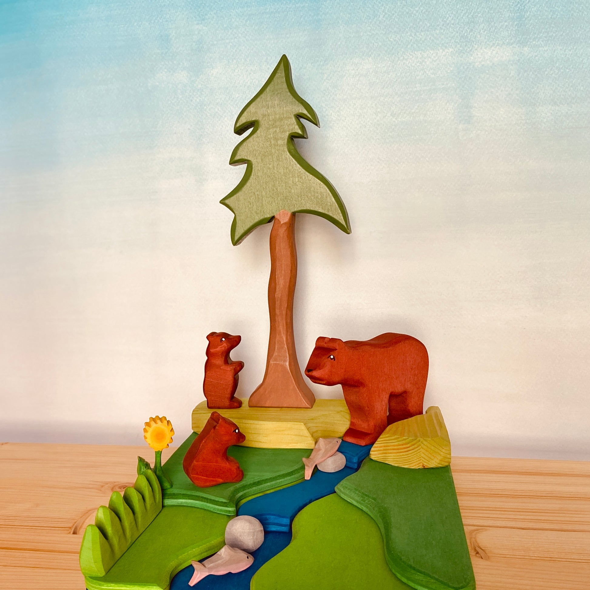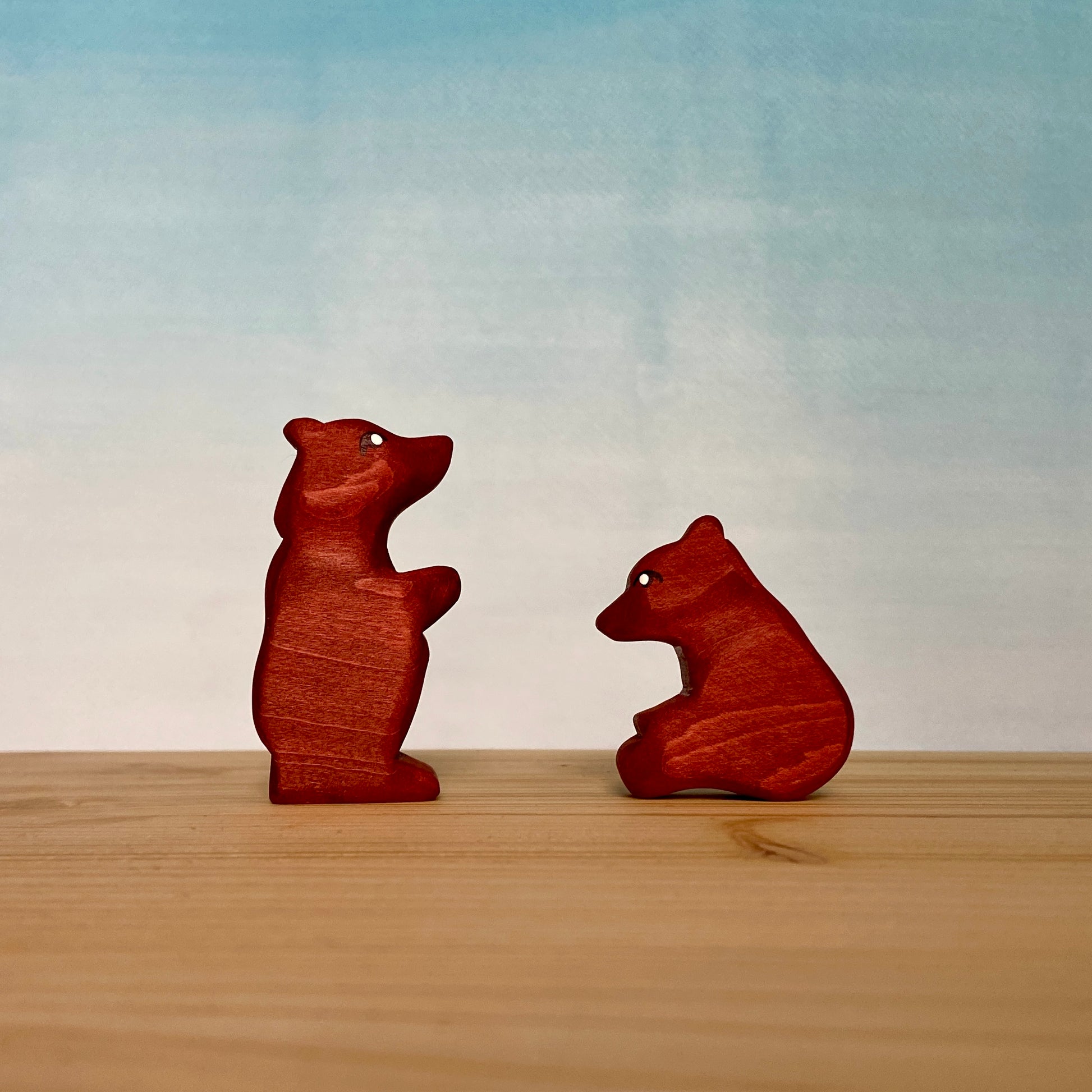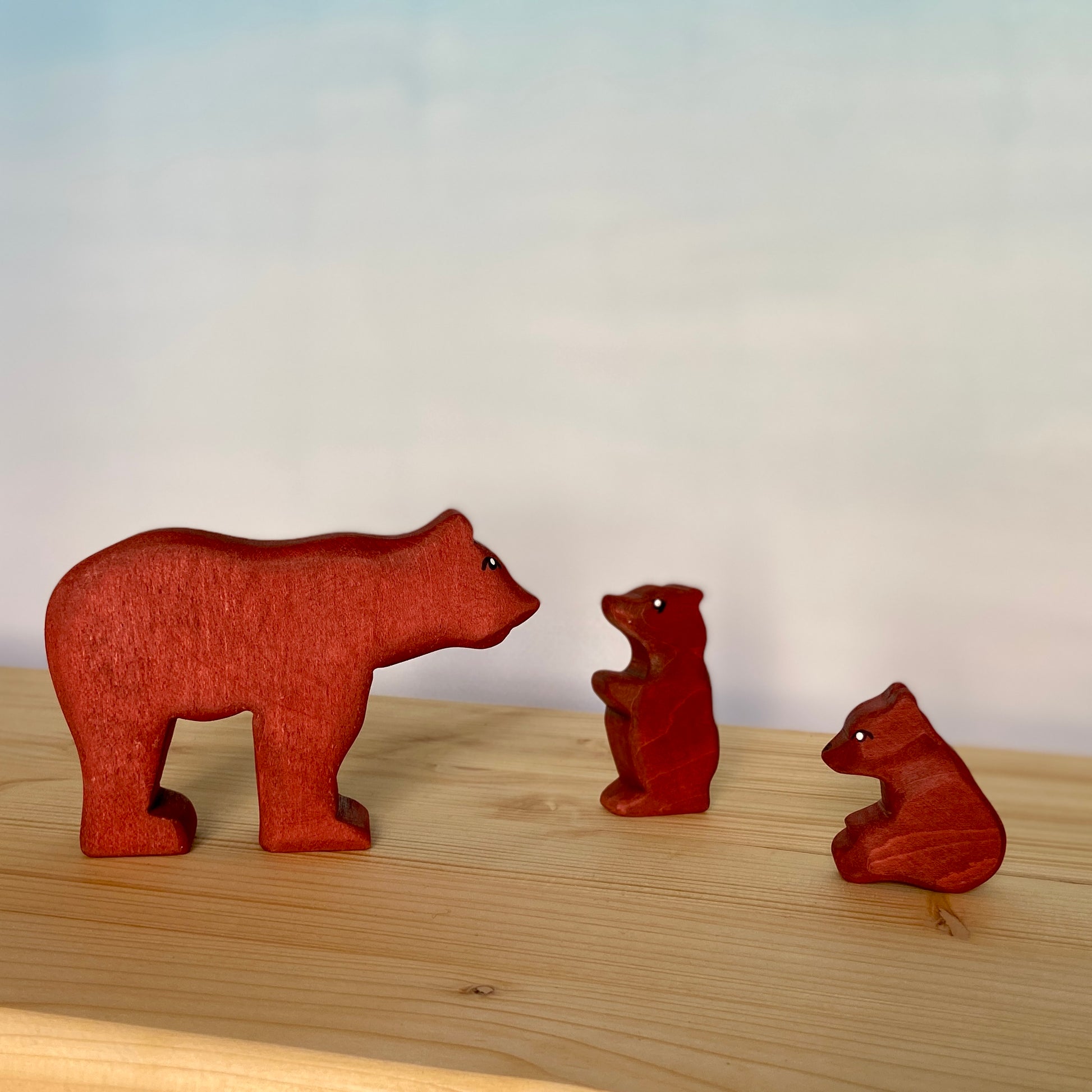 🌳 Our wooden animals are made from maple and painted with certified non-toxic water-based paint and pure linseed oil. Skilfully shaped like bears, these three wooden toys are based on the principles of Steiner education. The Waldorf toys are meant to teach the name of each animal, its shape, size, color, where it lives, and what it eats.