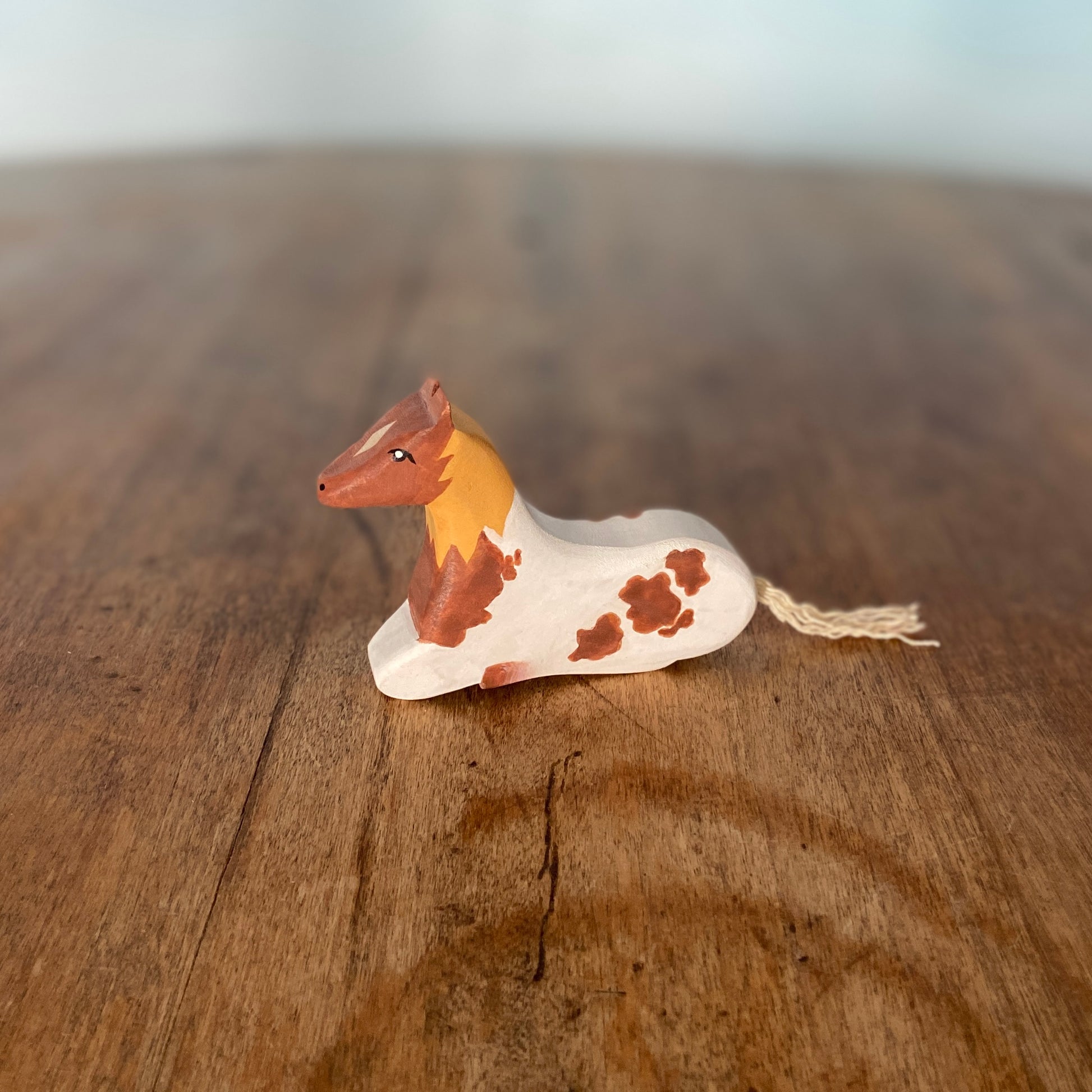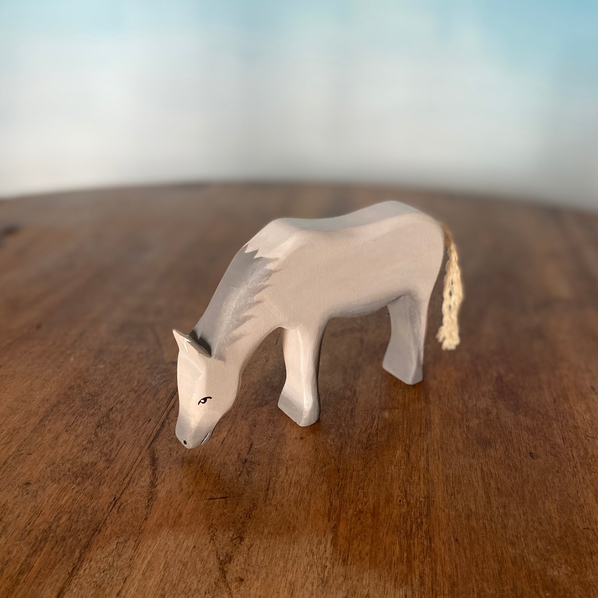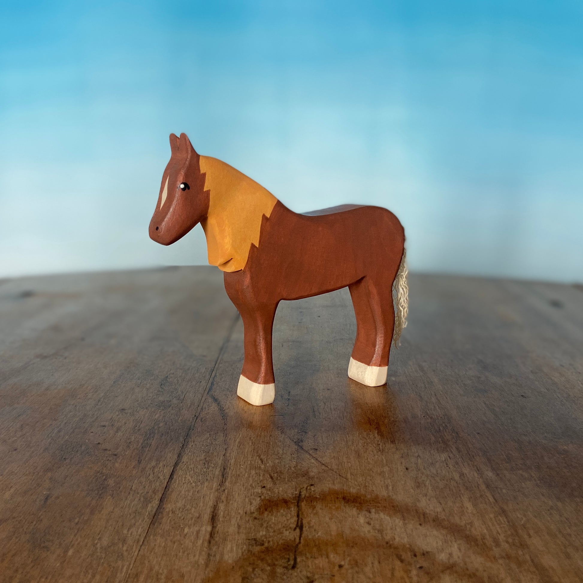❤️ Four wooden farm animals, skilfully shaped as beautiful horse figures. 🌳 The Waldorf toys are made from Sycamore maple and painted with certified non-toxic water-based paint. Each figure is sanded and shaped to resemble the real animal as much as possible.