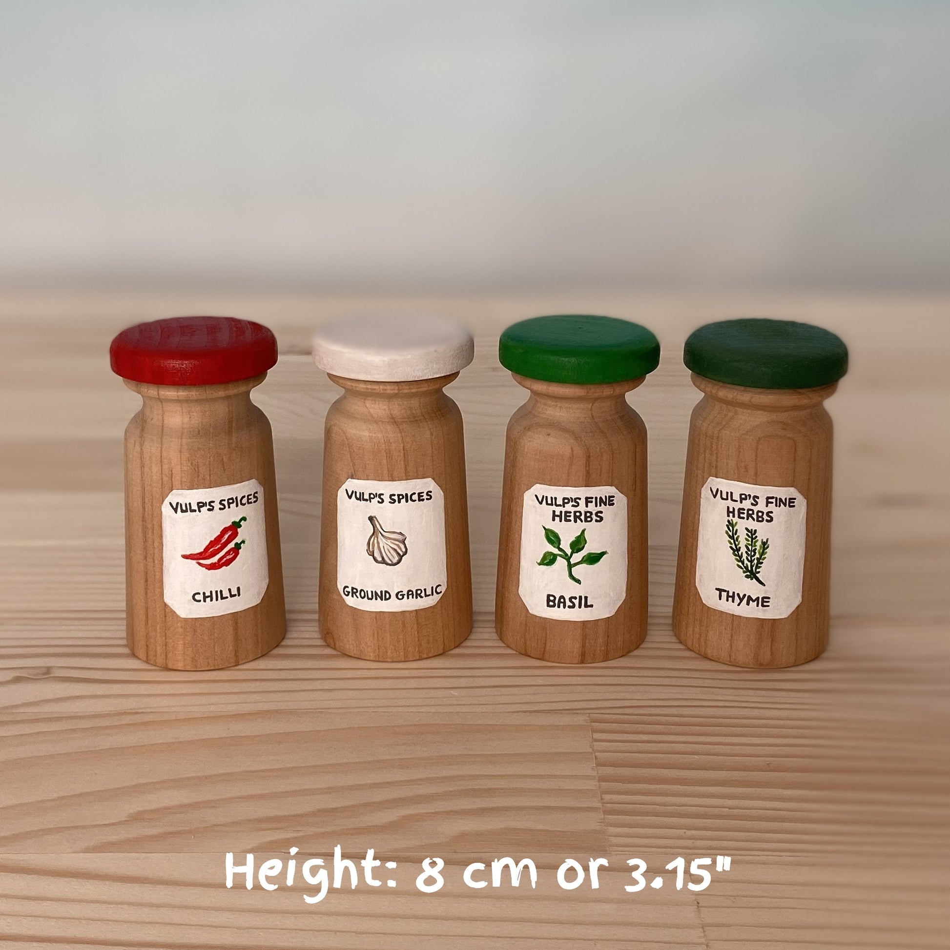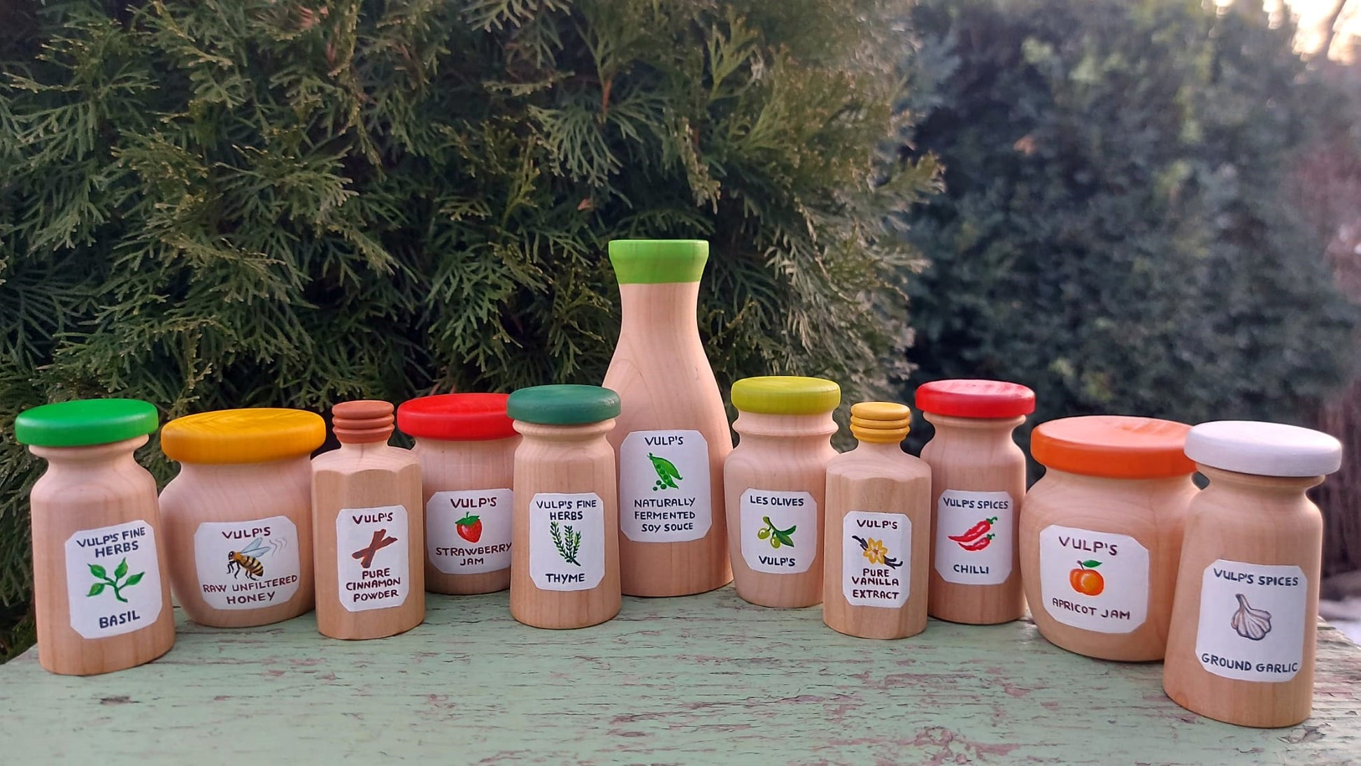 Wooden kitchen toys & play food - Herbs, Spices, Jams
