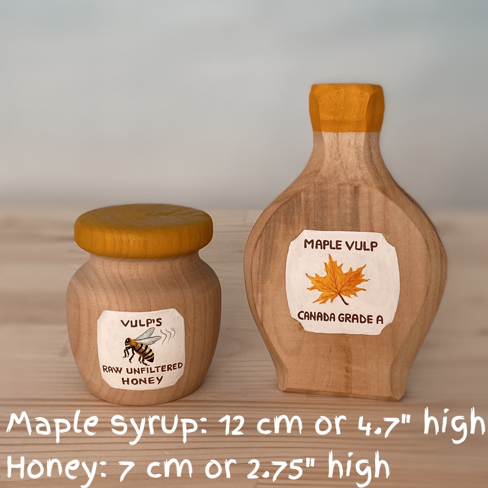 The wooden kitchen toys are perfect for kids who love pretending to be chefs, working in their coffee shop, or just at a good old-fashioned tea party. Al the pieces are 100% made from natural materials: cherry wood and nontoxic water-based. The jars and bottles are hand-crafted and painted in the most minute detail.