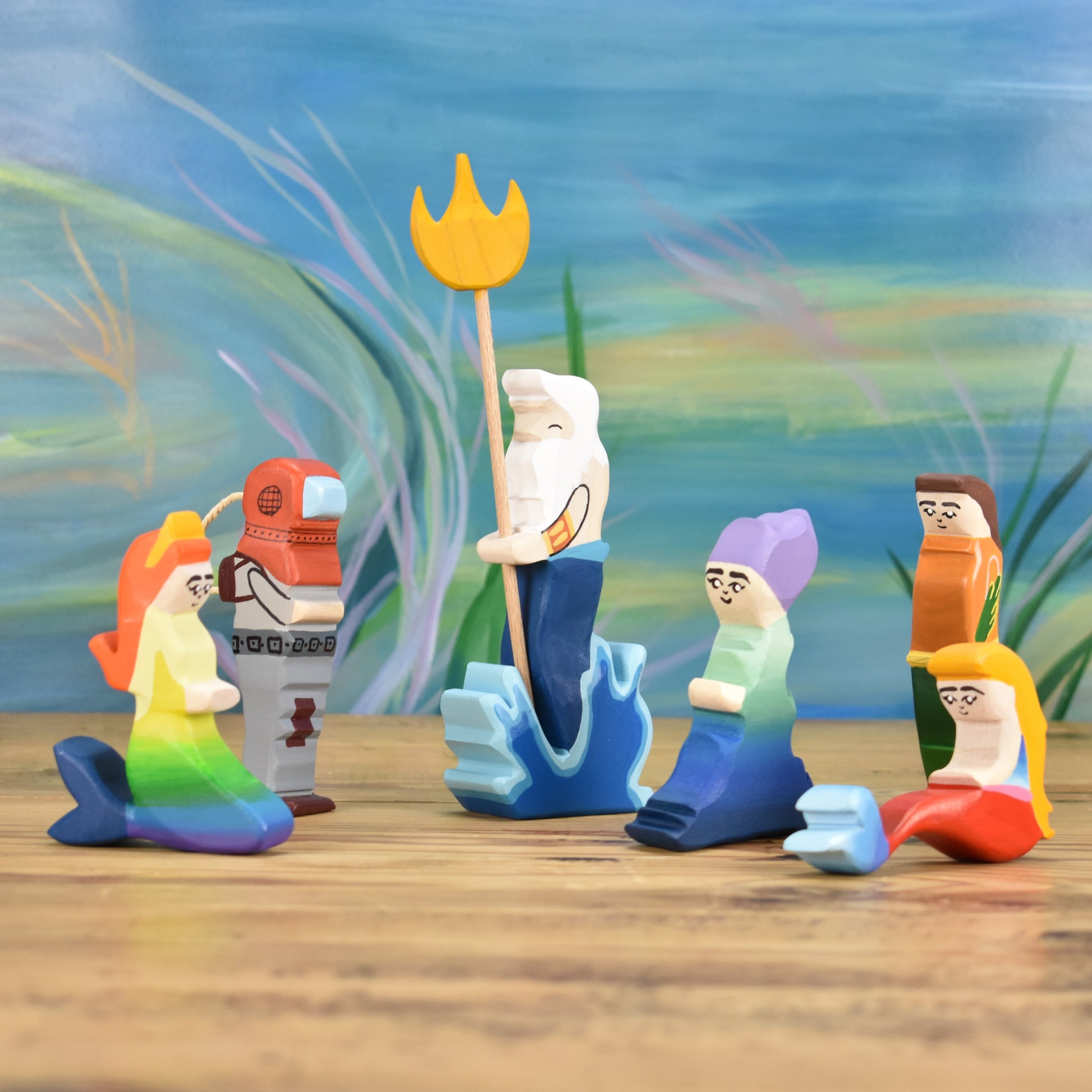 🌳 New wooden dolls in our magical realm! Six wooden mermaid dolls and merfolk miniatures skillfully handcrafted and painted for any kids' playroom. The possibilities for imaginative play are endless.