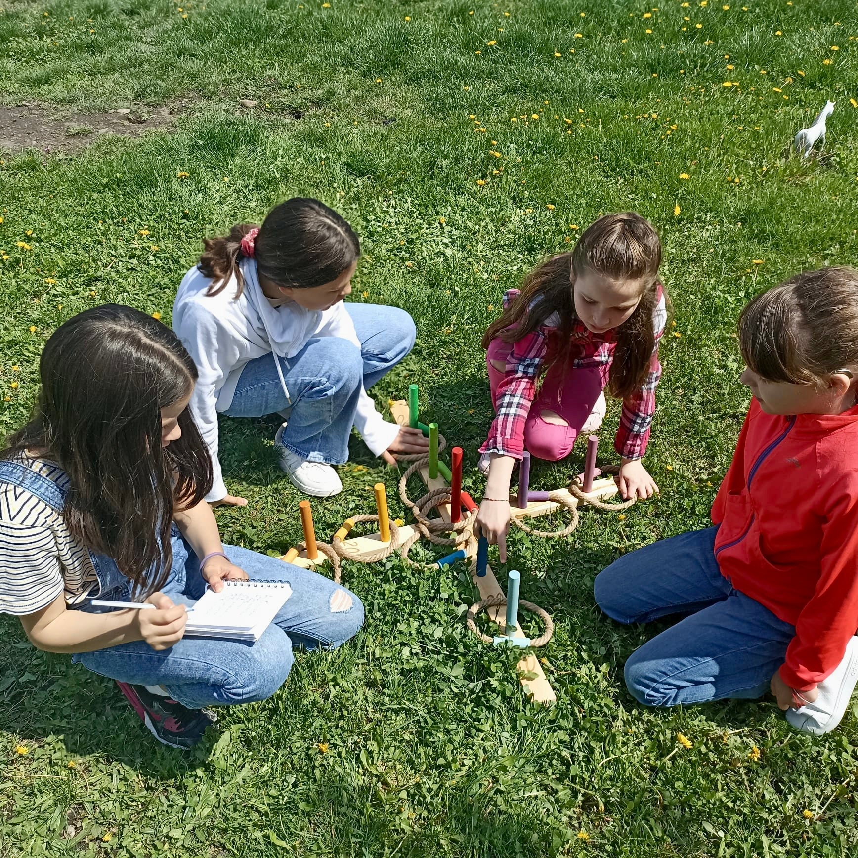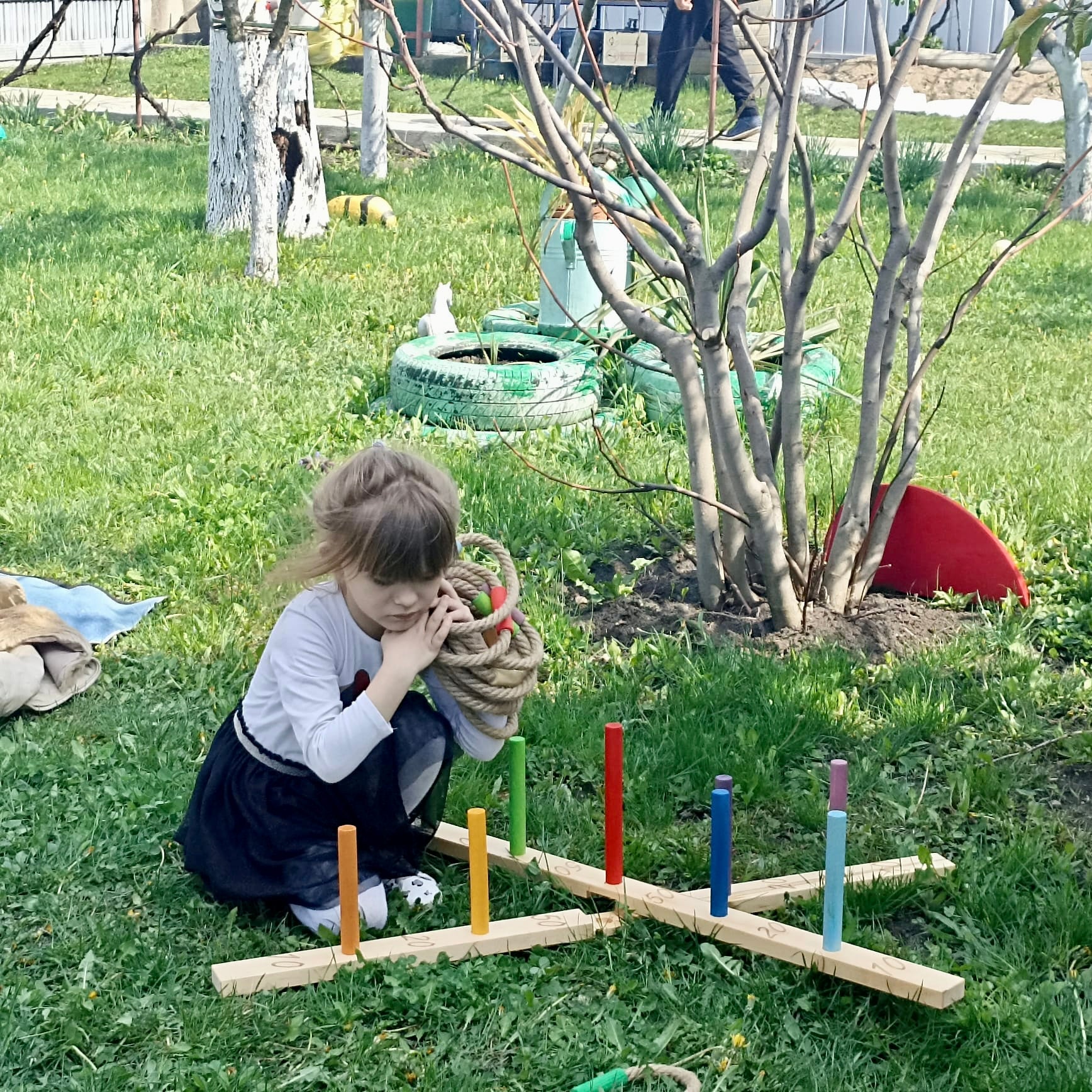 1. for beginners: players take turns throwing the rope rings (regardless of their color) toward the target stand. The winner is the player with the highest score.