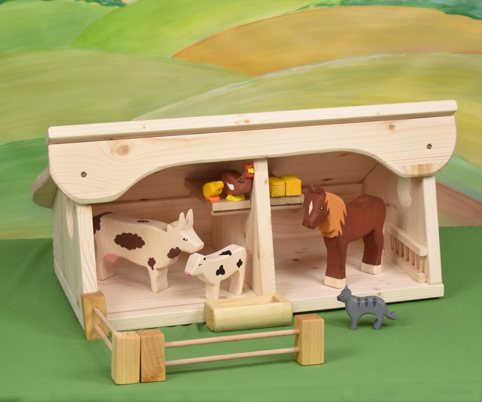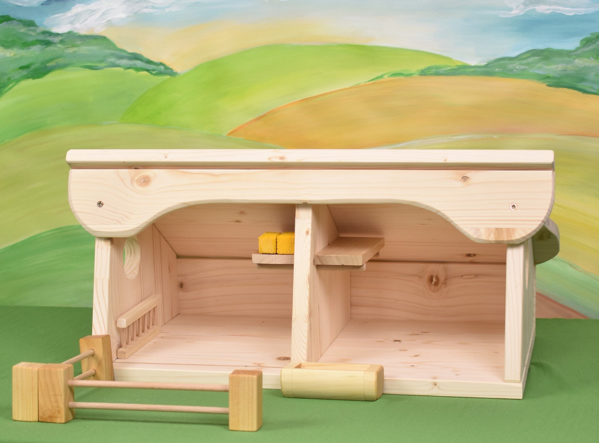 🌿Wooden toy barn or shelter for your beloved farm animals. The toy is made from spruce, finely sanded, and finished with linseed oil.