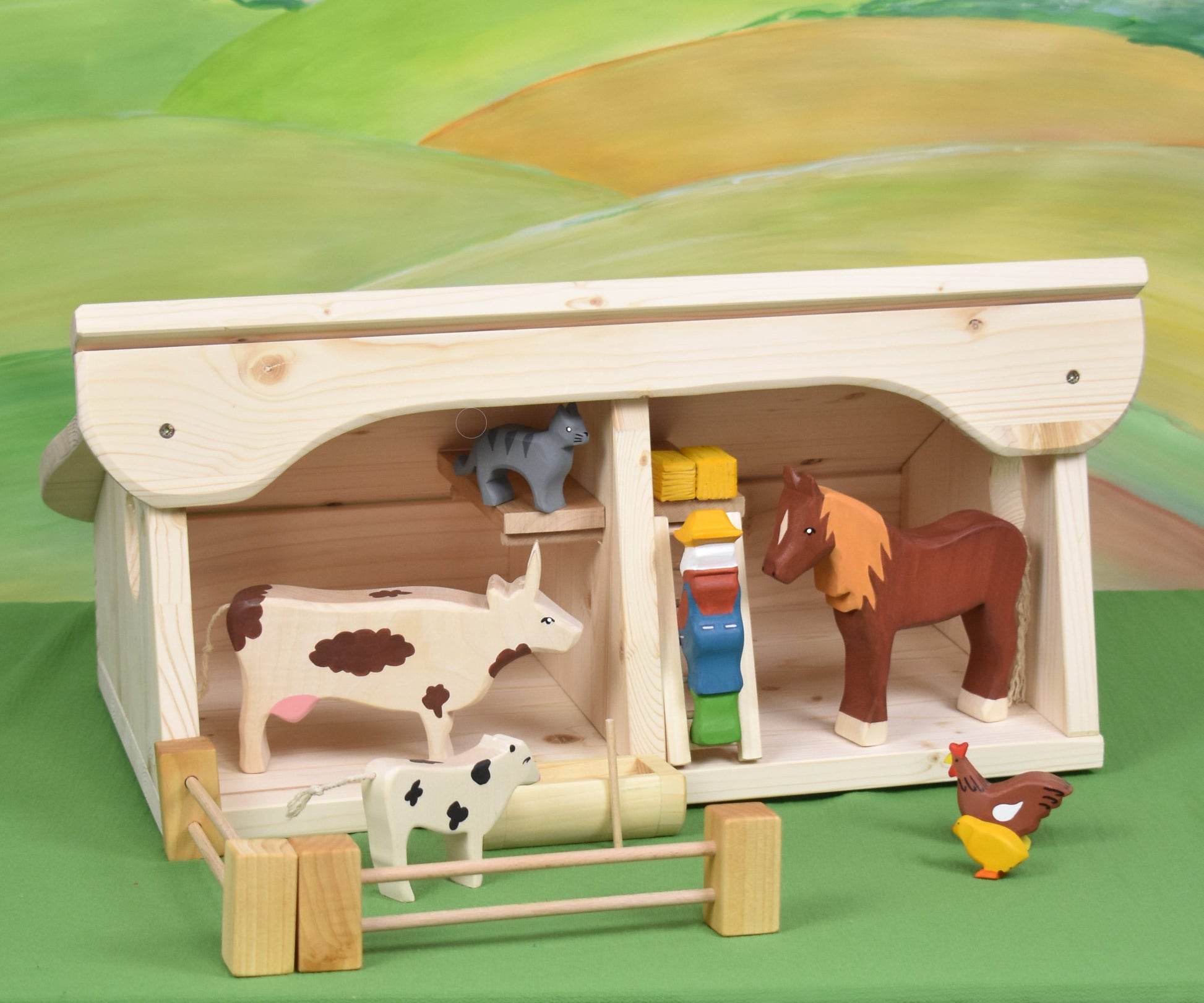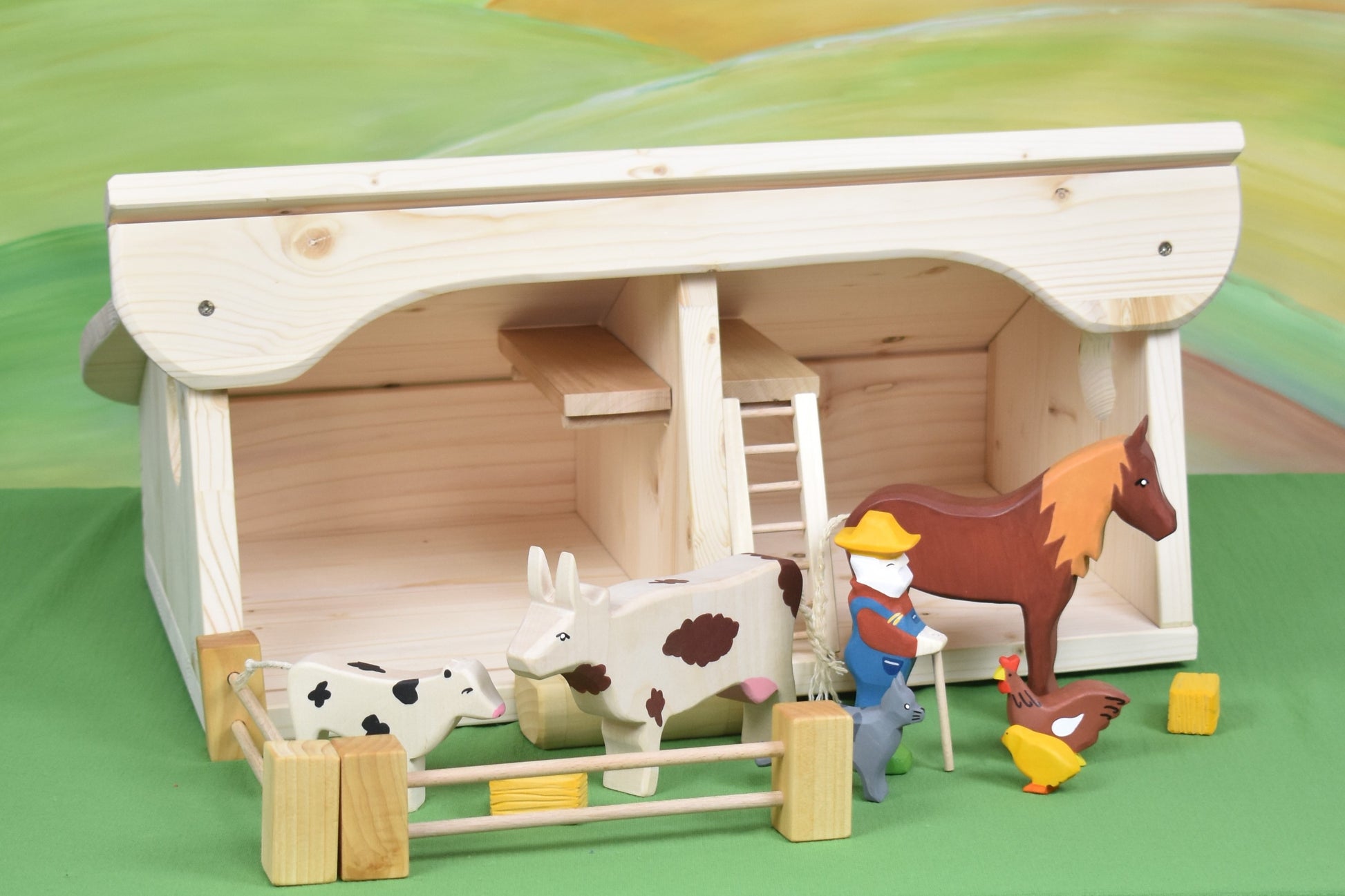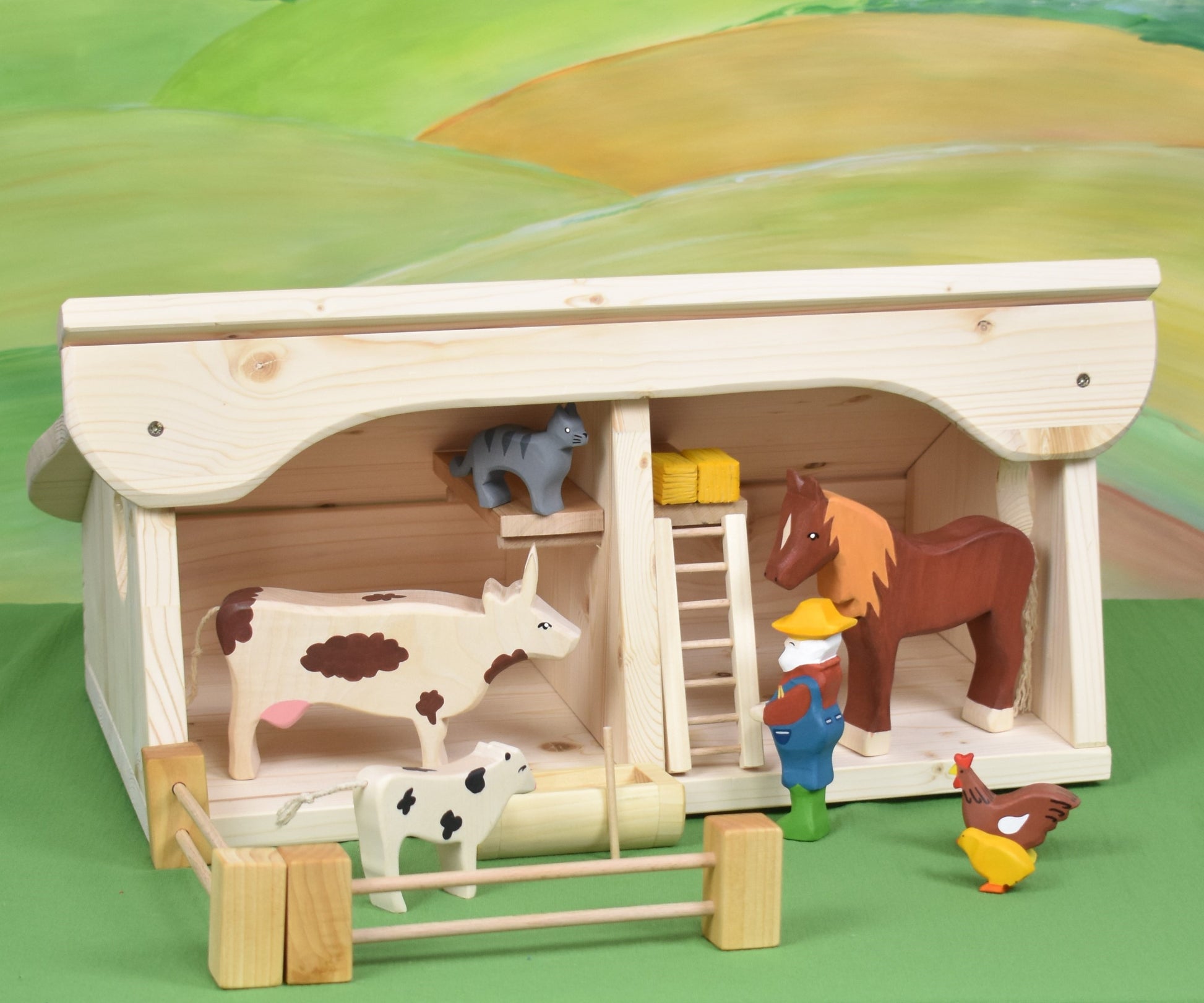🎨 The lovable animal toy figurines, as well as farmer John, are handcrafted from maple and hand-painted with certified water-based paint, and you can order them separately from this link: